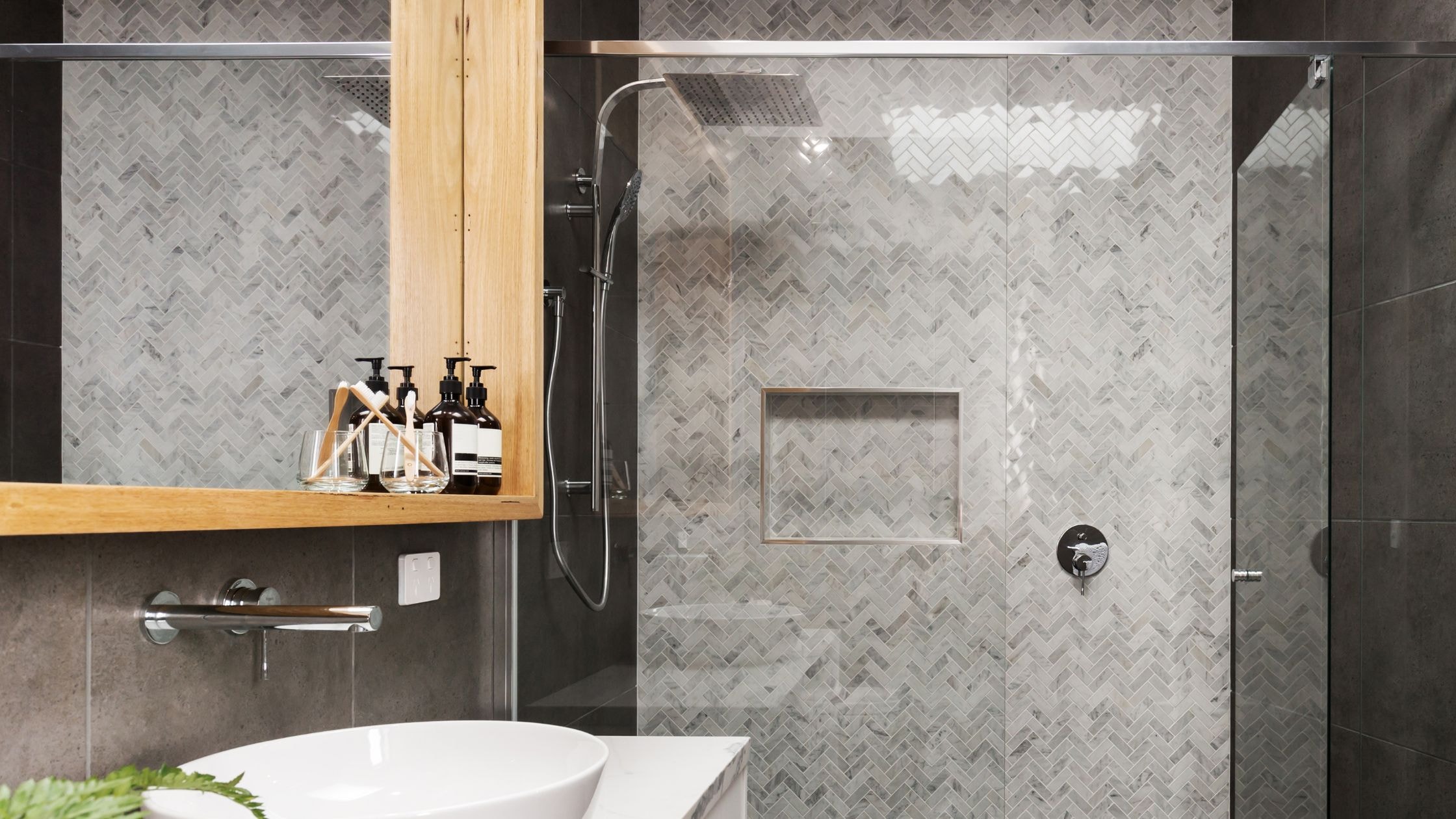 Quick tip: Incorporate recessed medicine cabinets and built-in shelving to maintain modern bathrooms’ clean walls while providing essential storage that doesn’t disrupt minimalist aesthetics.